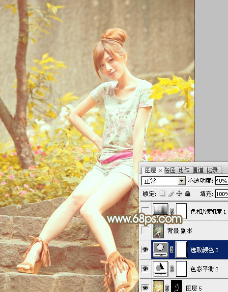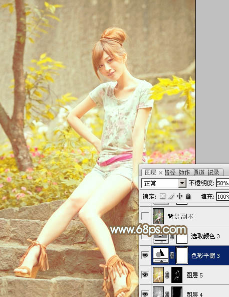 Photoshop给花草边的美女加上柔和的黄褐色(6)