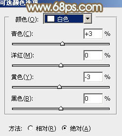 11、创建可选颜色调整图层,对红、黄、白进行调整,参数设置如图24 - 26,确定后把图层不透明度改为:40%,效果如图27。这一步稍微减少图片的淡黄色。