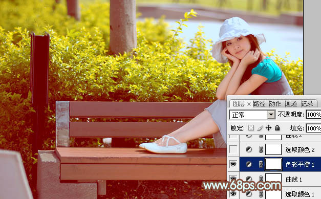 Photoshop给公园美女加上流行的韩系黄褐色(4)