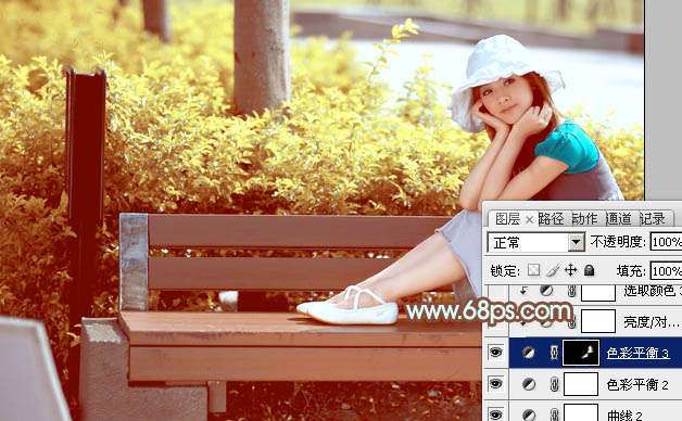 Photoshop给公园美女加上流行的韩系黄褐色(7)