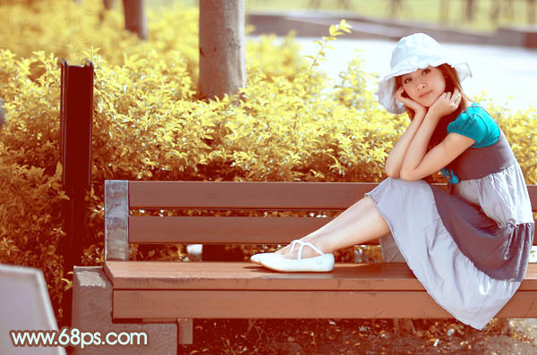Photoshop给公园美女加上流行的韩系黄褐色