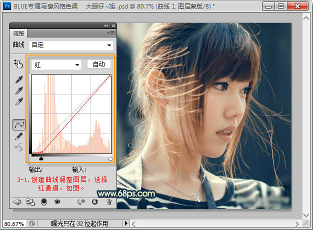 3、创建曲线调整图层,对红,蓝进行调整,参数及效果如下图。