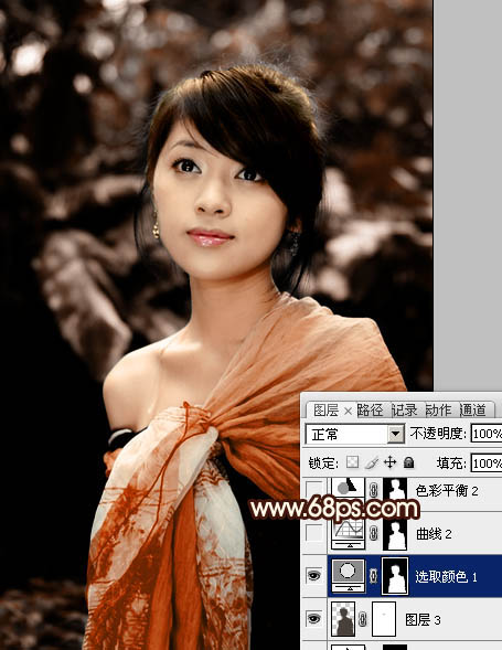 Photoshop调出外景美女图片个性的橙褐色(4)