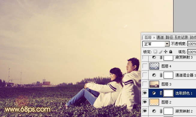 Photoshop调出外景情侣图片柔和的紫黄色