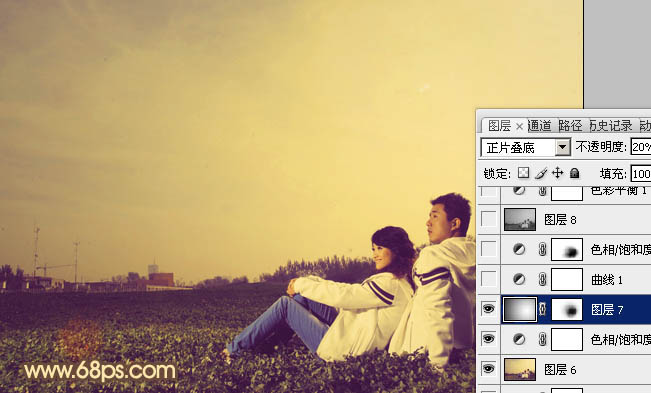 Photoshop调出外景情侣图片柔和的紫黄色(7)