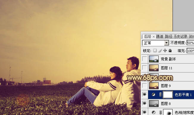Photoshop调出外景情侣图片柔和的紫黄色(8)