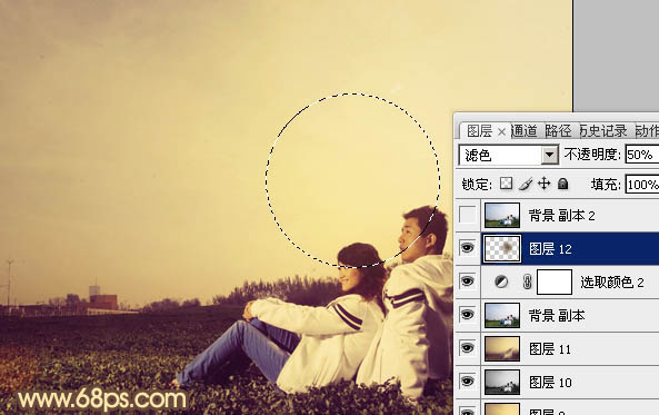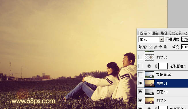 Photoshop调出外景情侣图片柔和的紫黄色(9)