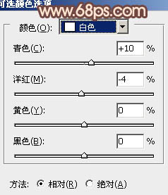 3、创建可选颜色调整图层,对红、黄、白进行调整,参数设置如图5 - 7,效果如图8。