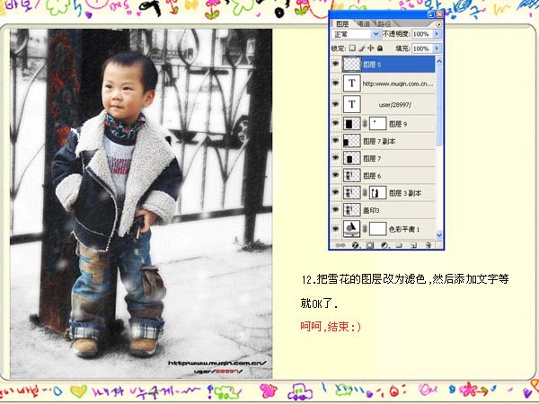 第12步:把雪花图层改为滤色,然后添加文字等就OK了