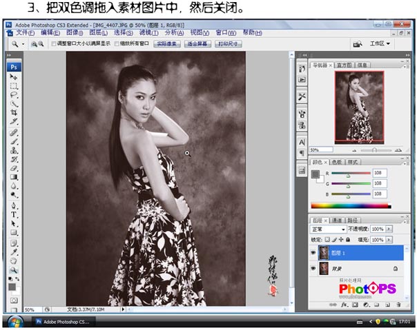 3、把双色调拖入素材图片中,然后关闭。
