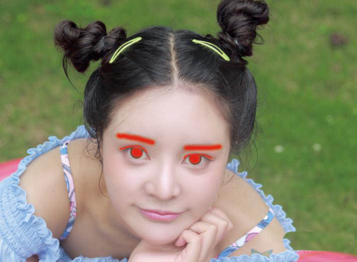 下面加深的是眼球、眼线和眉毛的颜色,让面部看上去更立体,颜色更饱满。