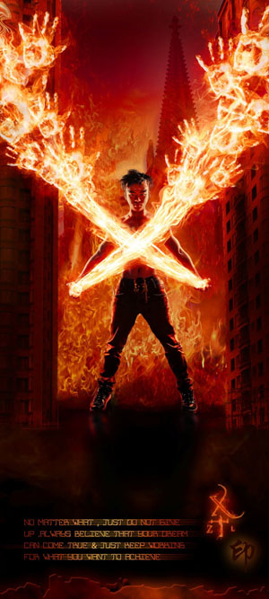 作者合成图片的方法非常细腻,过程:先合成一幅教暗的背景图片;再加入鹿,并用火焰素材给鹿角部分增加火焰;再根据光源位置,给鹿局部及地面部分增加火焰反光即可。最终效果